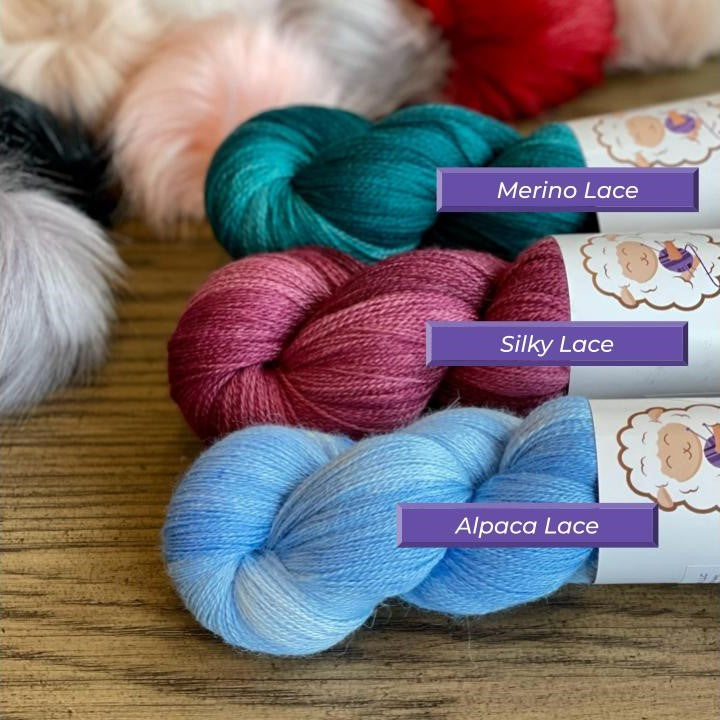 - Alpaca Lace - 70% Baby Alpaca, 20% Silk, 10% Cashmere (1310yd/100g)