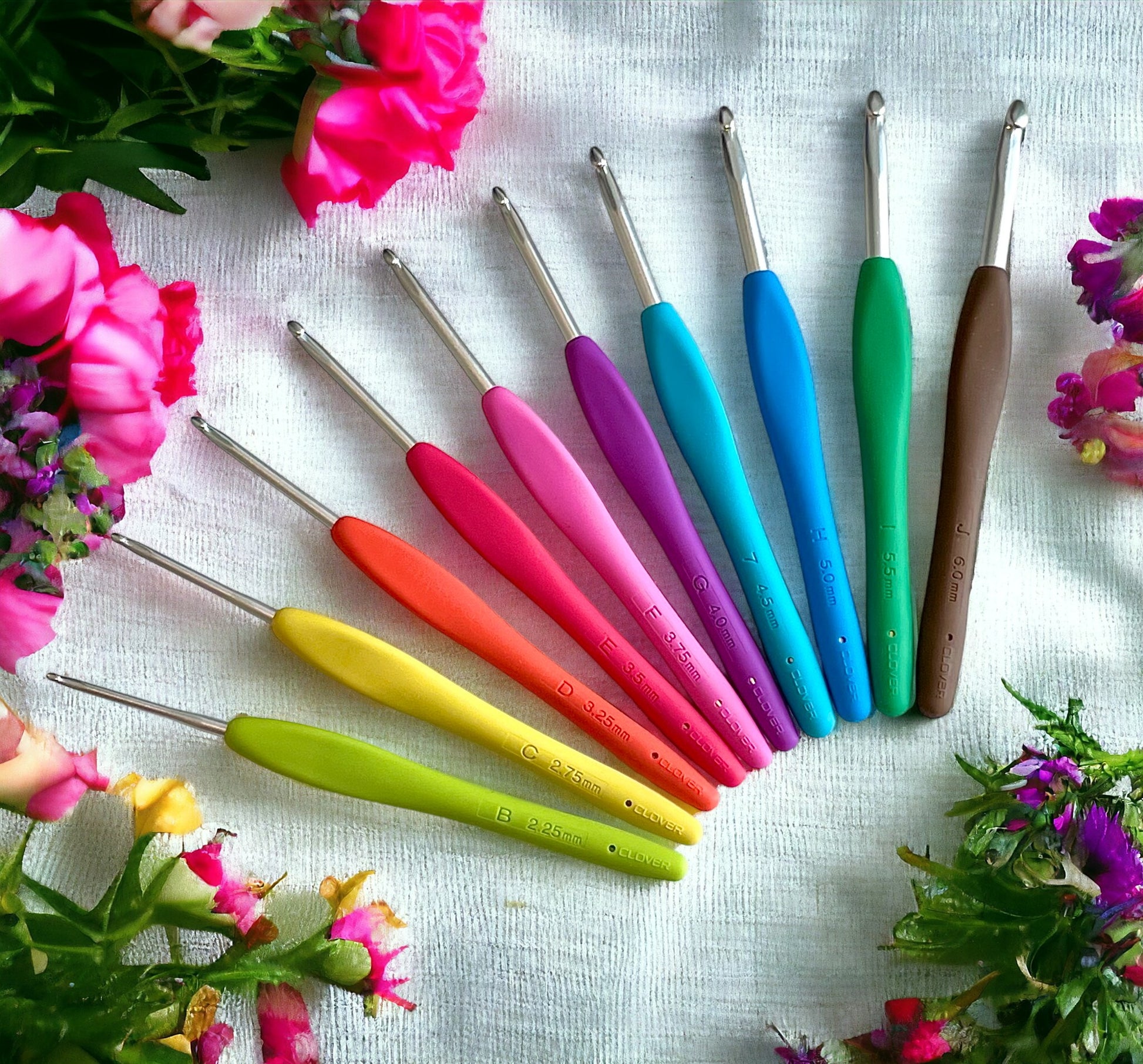 - Set includes 10 hooks sizes B - J (2.25mm - 6mm)