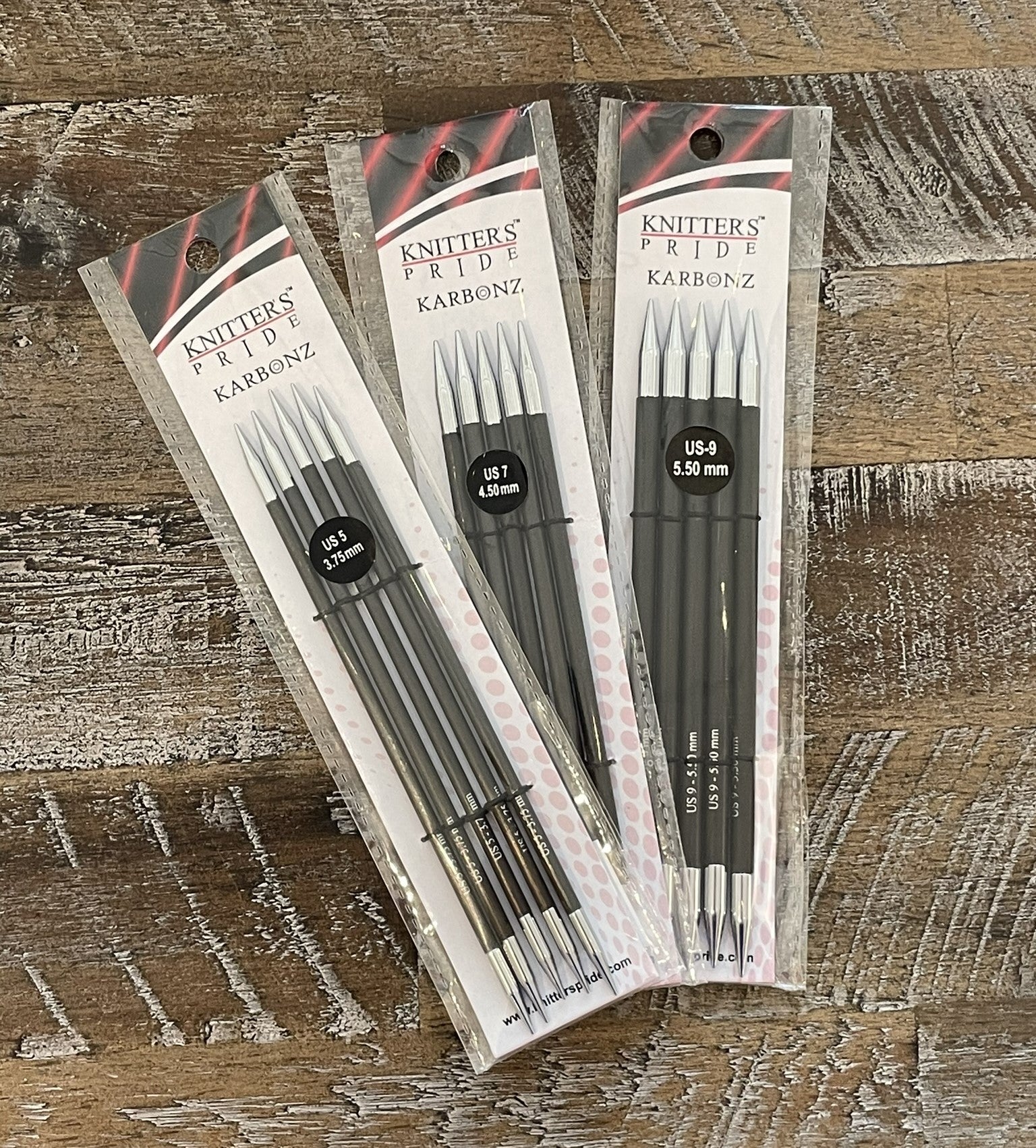 KnitPro takes pride in their work, and these Karbonz double-pointed needles are no exception. Made from high-tech carbon fibers and tipped in sturdy brass, these needles will remain strong for all your circular knitting needs.